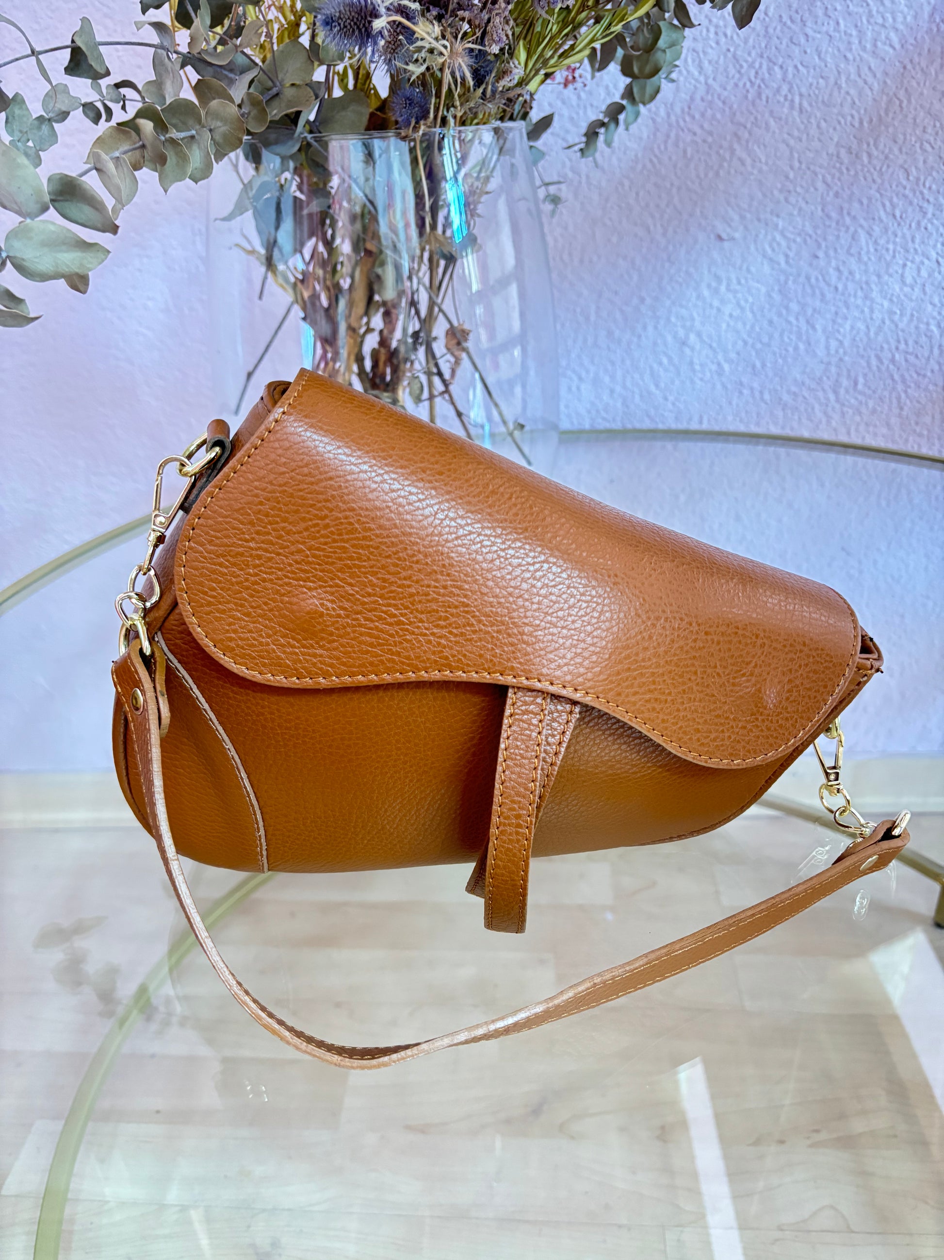 bolso de piel con doble asa , extraible . Color camel. Medidas 25x20