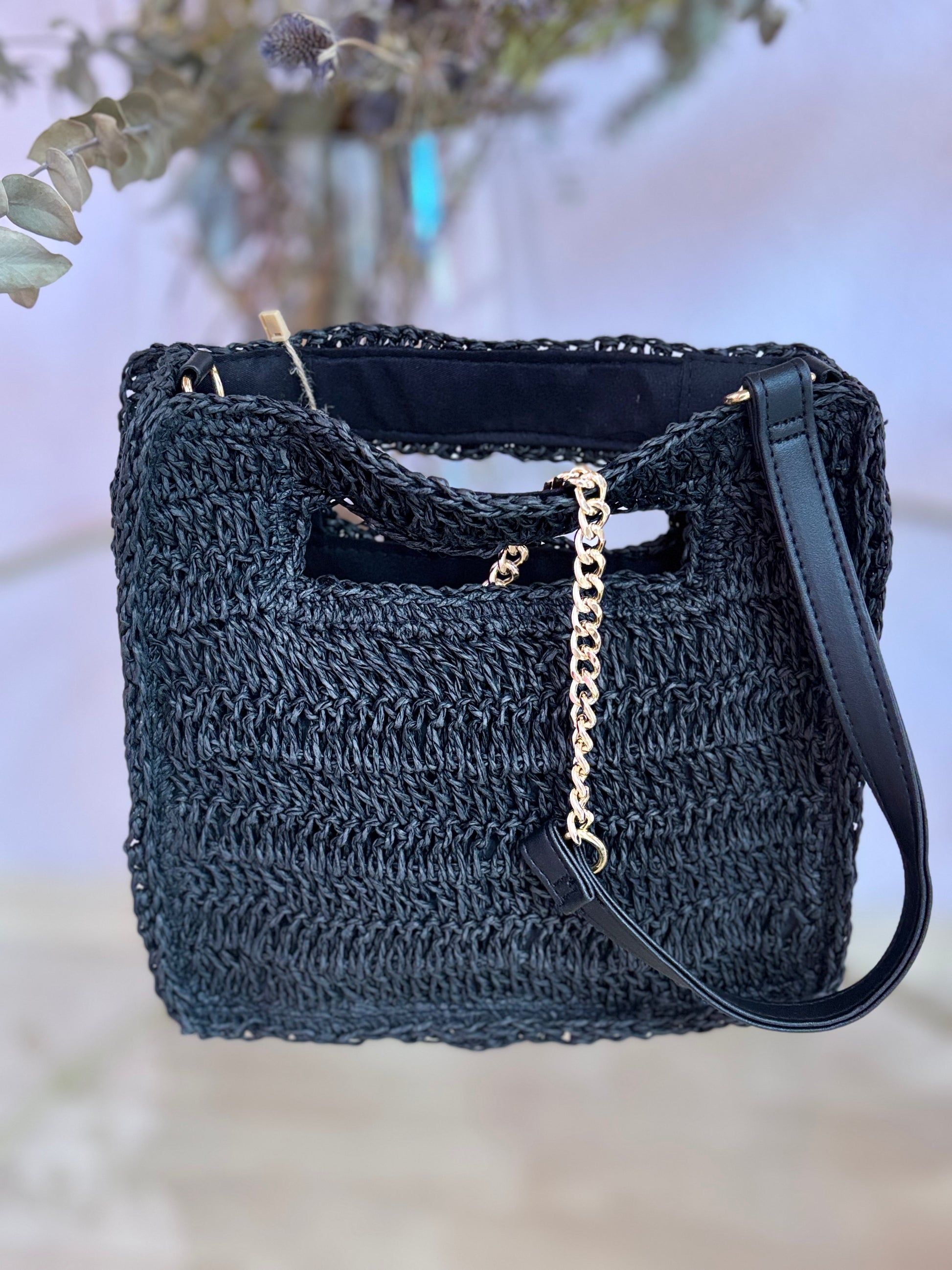 Bolso rafia ,con doble asa , una de ellas extraíble.