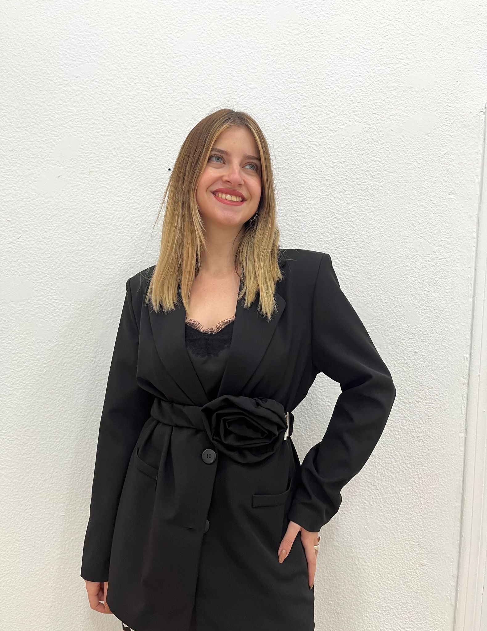 Chaqueta recta abotonada de color negro overzice .Talla única 38-42 aprox.