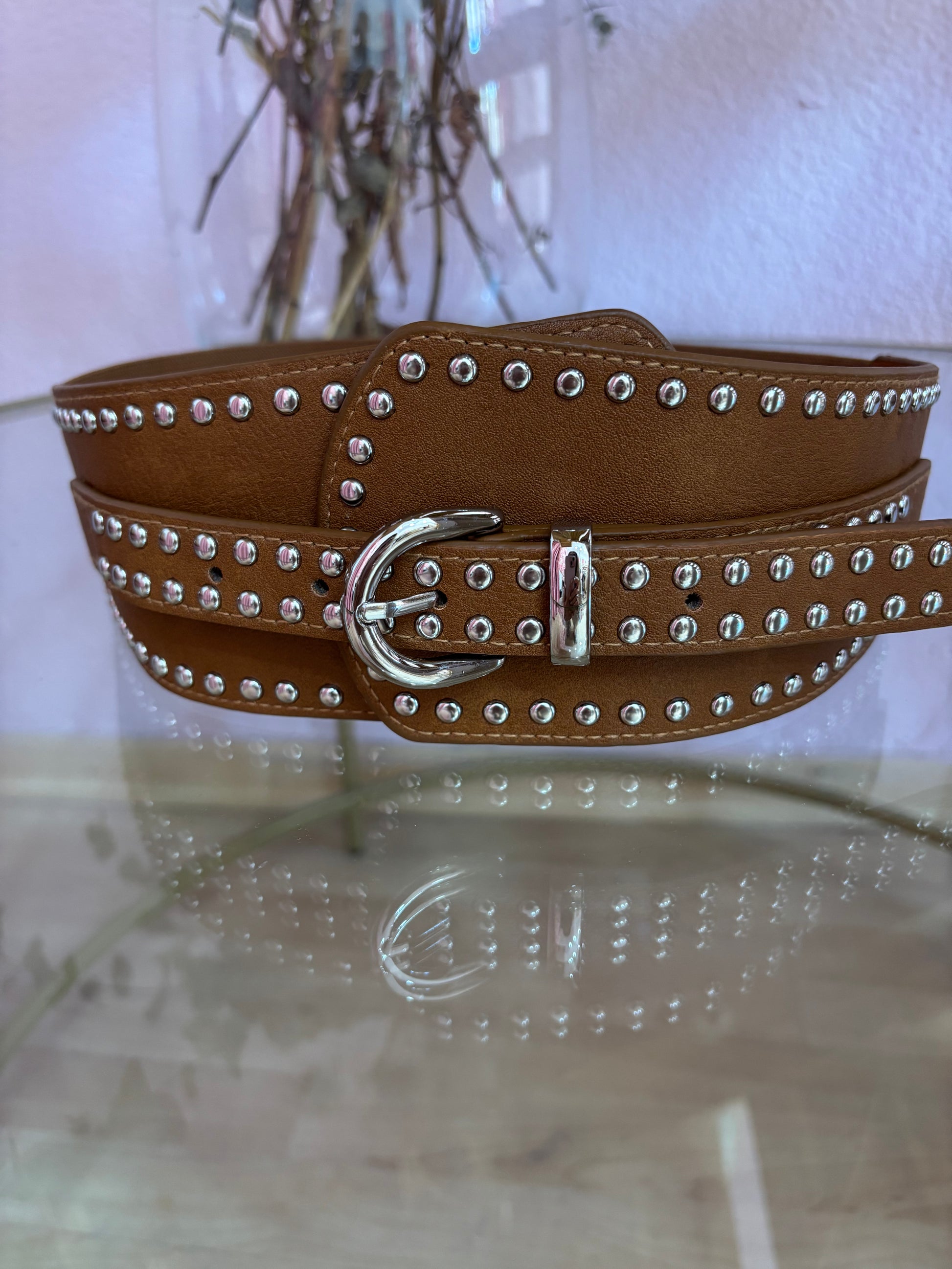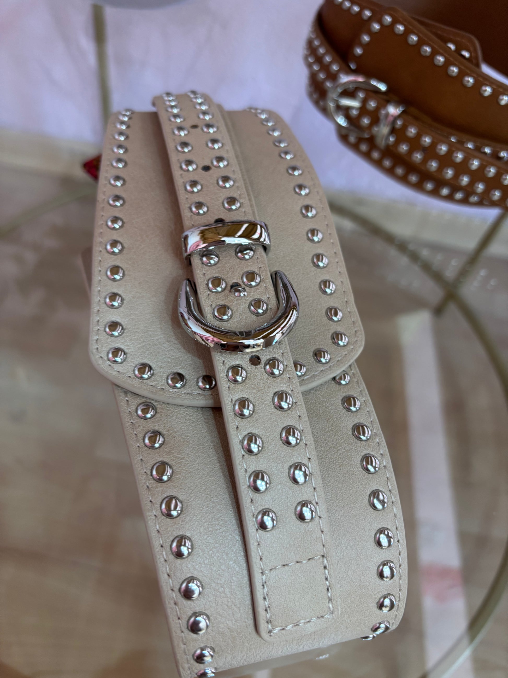 Cinturón adornado con tachas en color plata, con elástico para mejor adaptación. Varios colores . Talla única