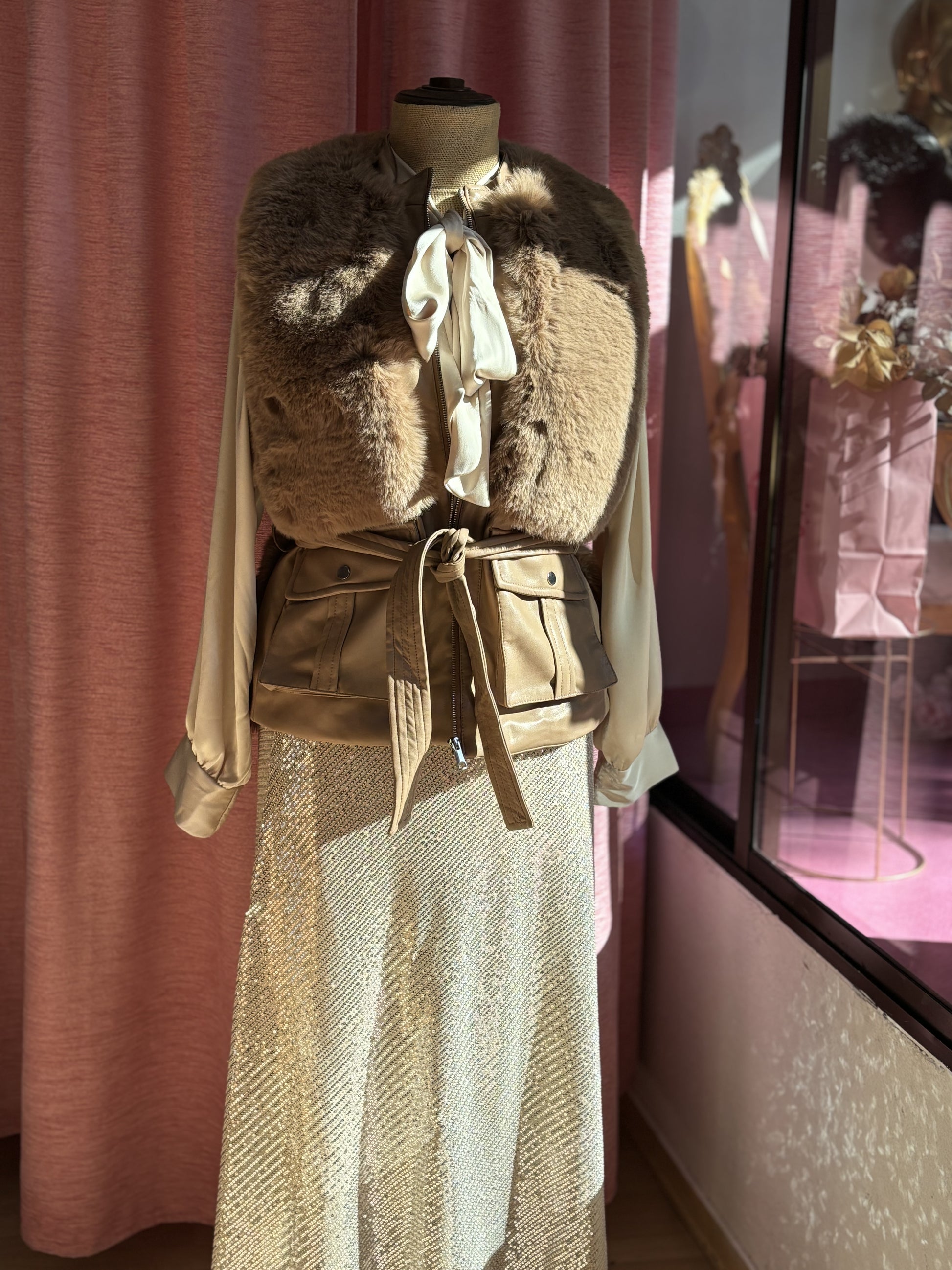 FALDA LENTEJUELAS BEIGE