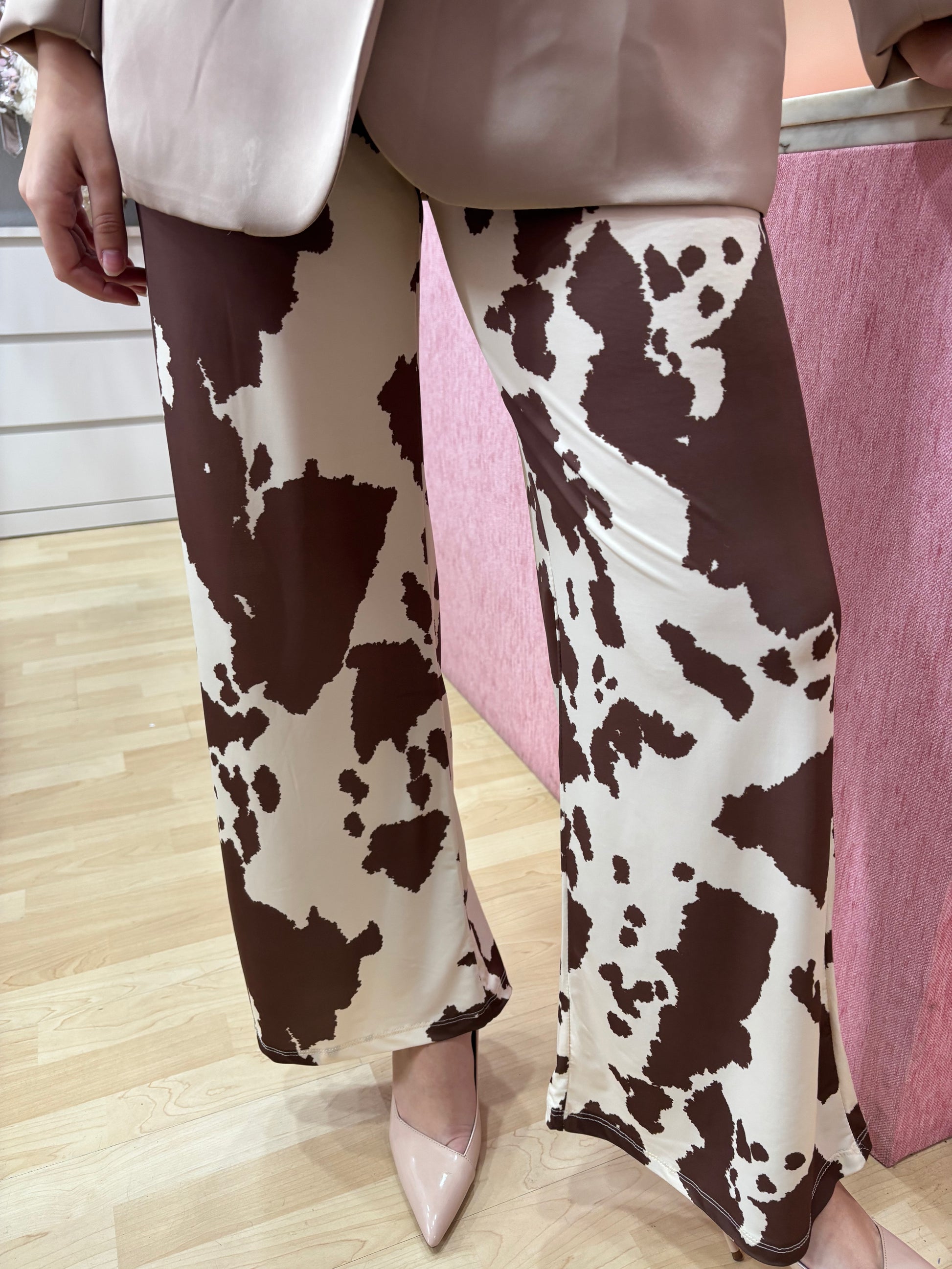 Pantalón elástico ancho por el bajo . Color marrón y beige . Talla única 36-42 aprox