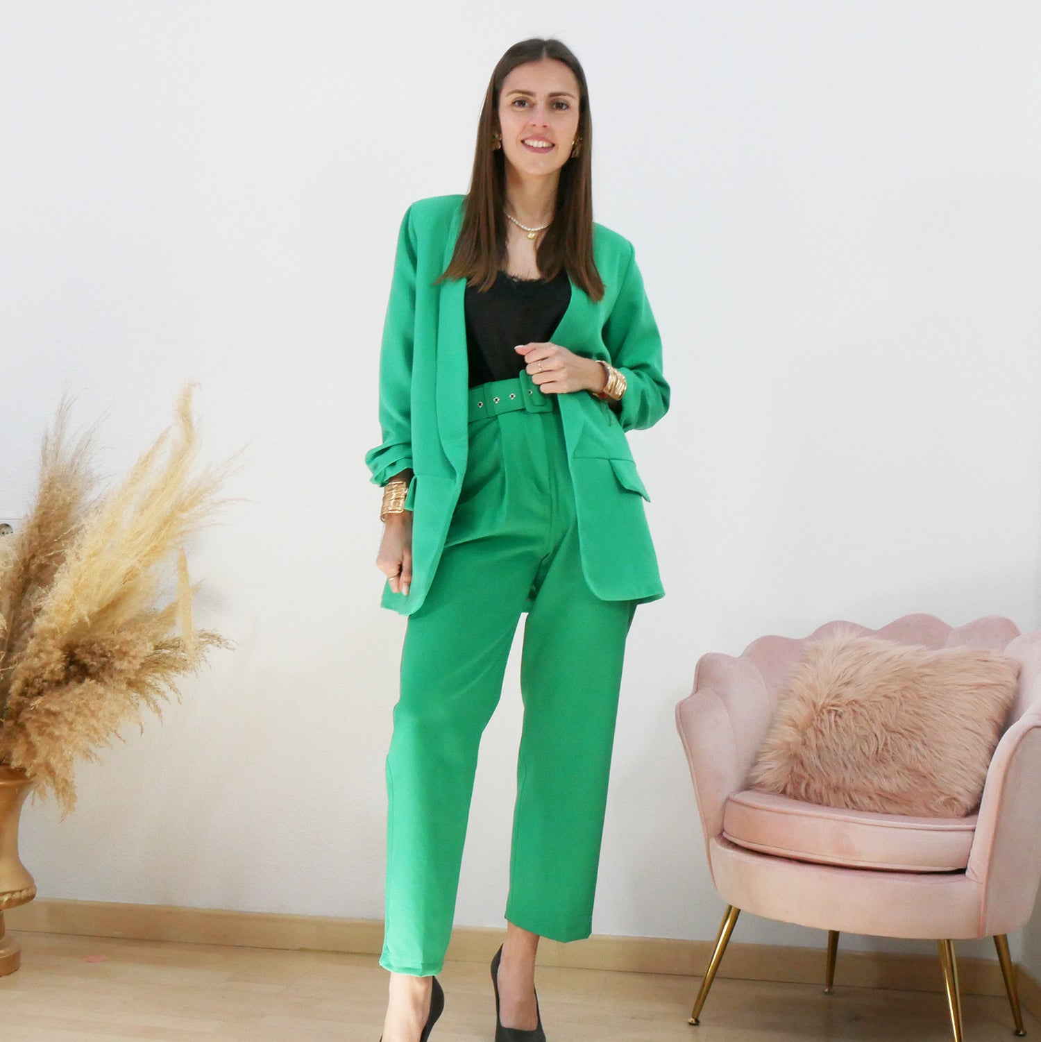 El color verde difiere un poco al color de la americana Samy