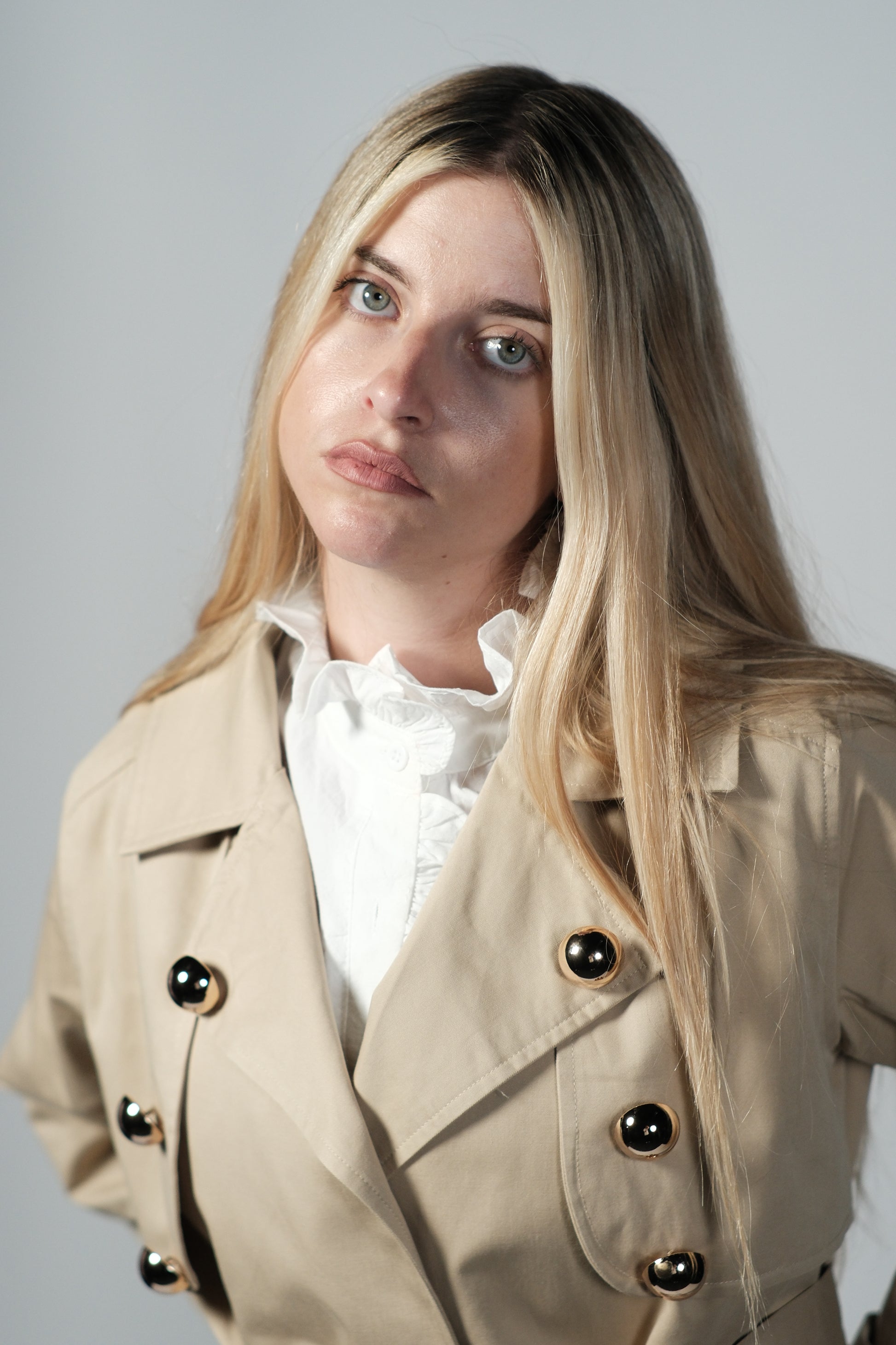 Trench crop , anudado al cintura , adornado con botones dorados.Talla S,M y L .Tejido 100% algodón. Totalmente forrado